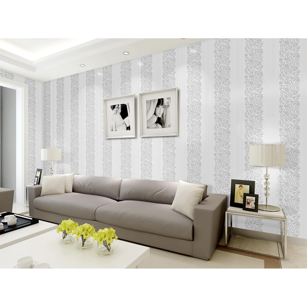 Jual Wallpaper Sticker Dinding Murah Kamar Ruang Tamu Motif Batik Modern Putih Silver Elegan Indonesia Shopee Indonesia